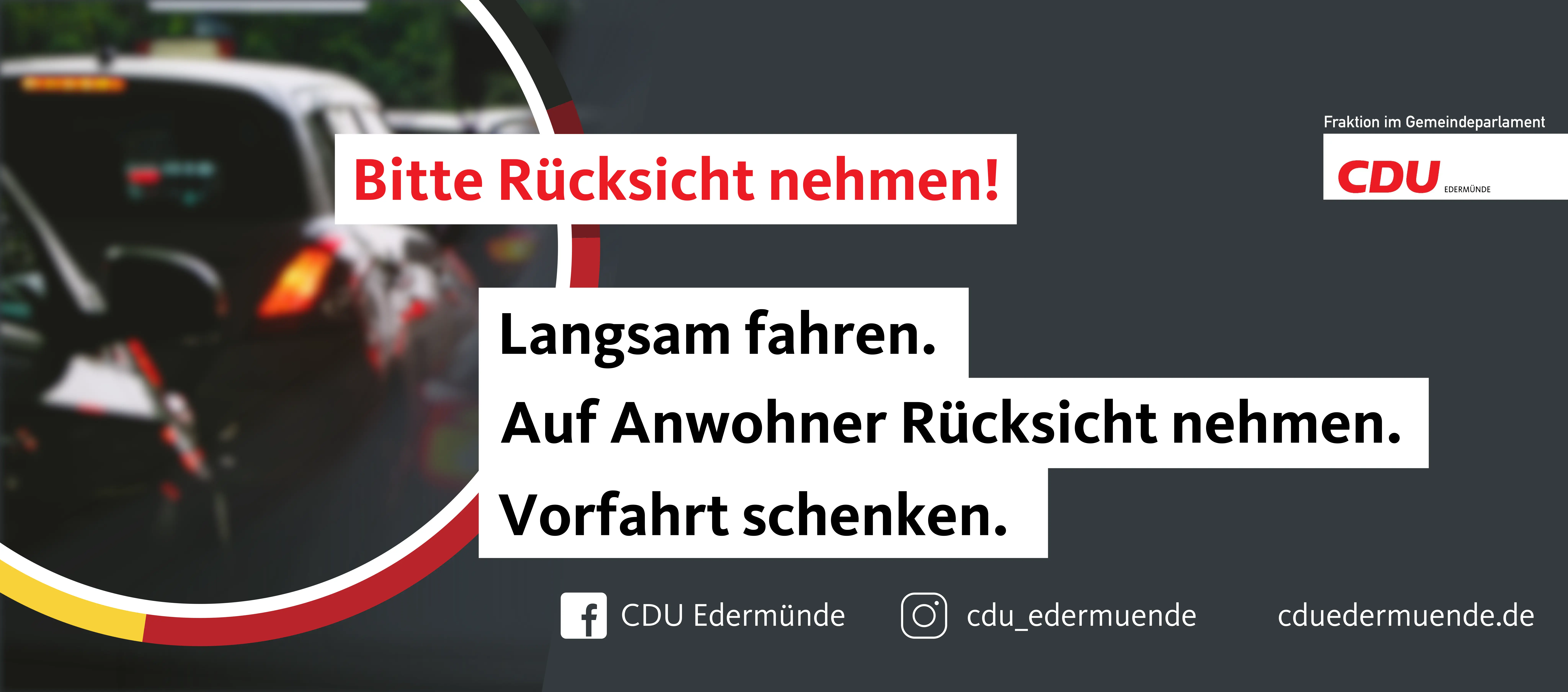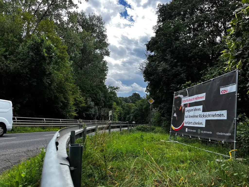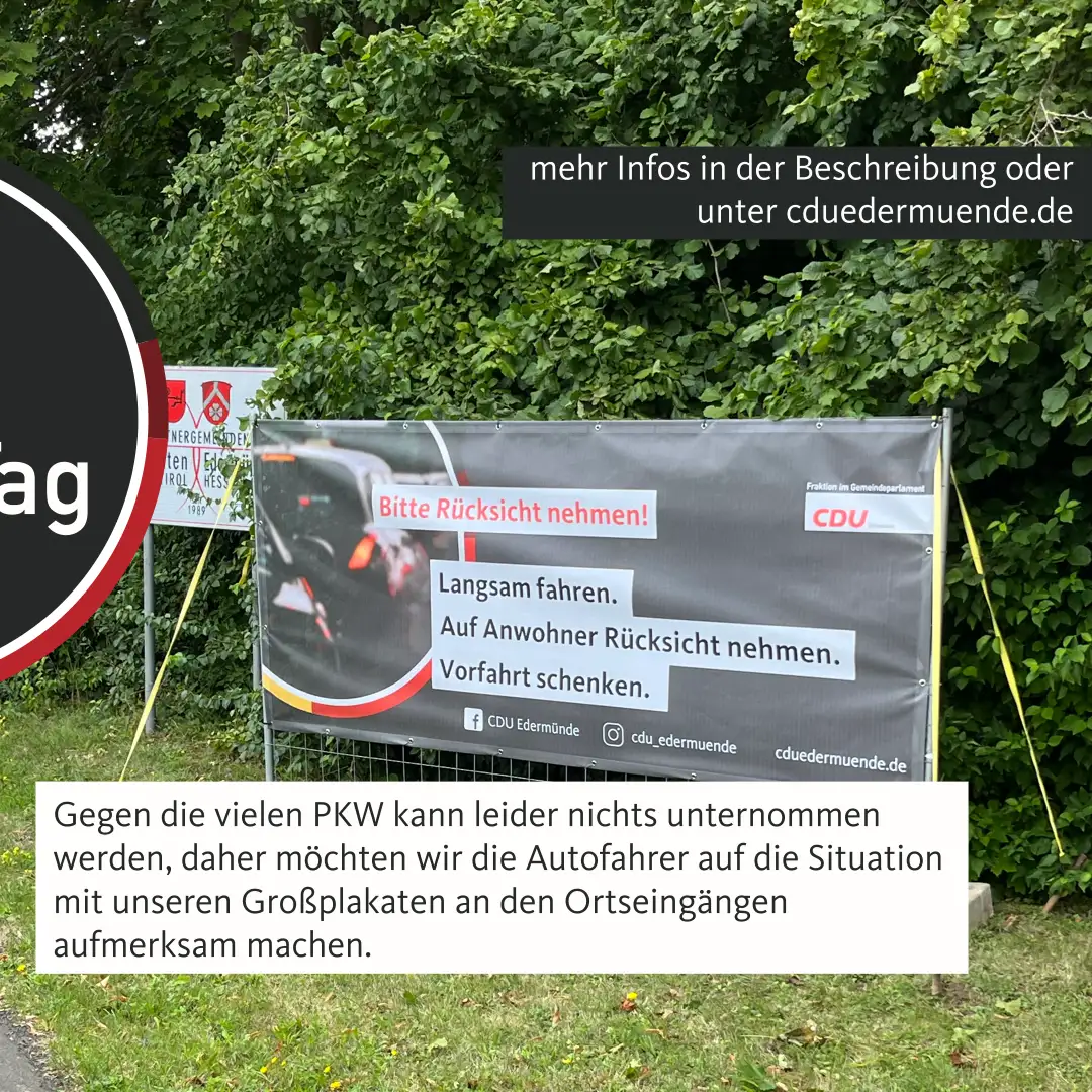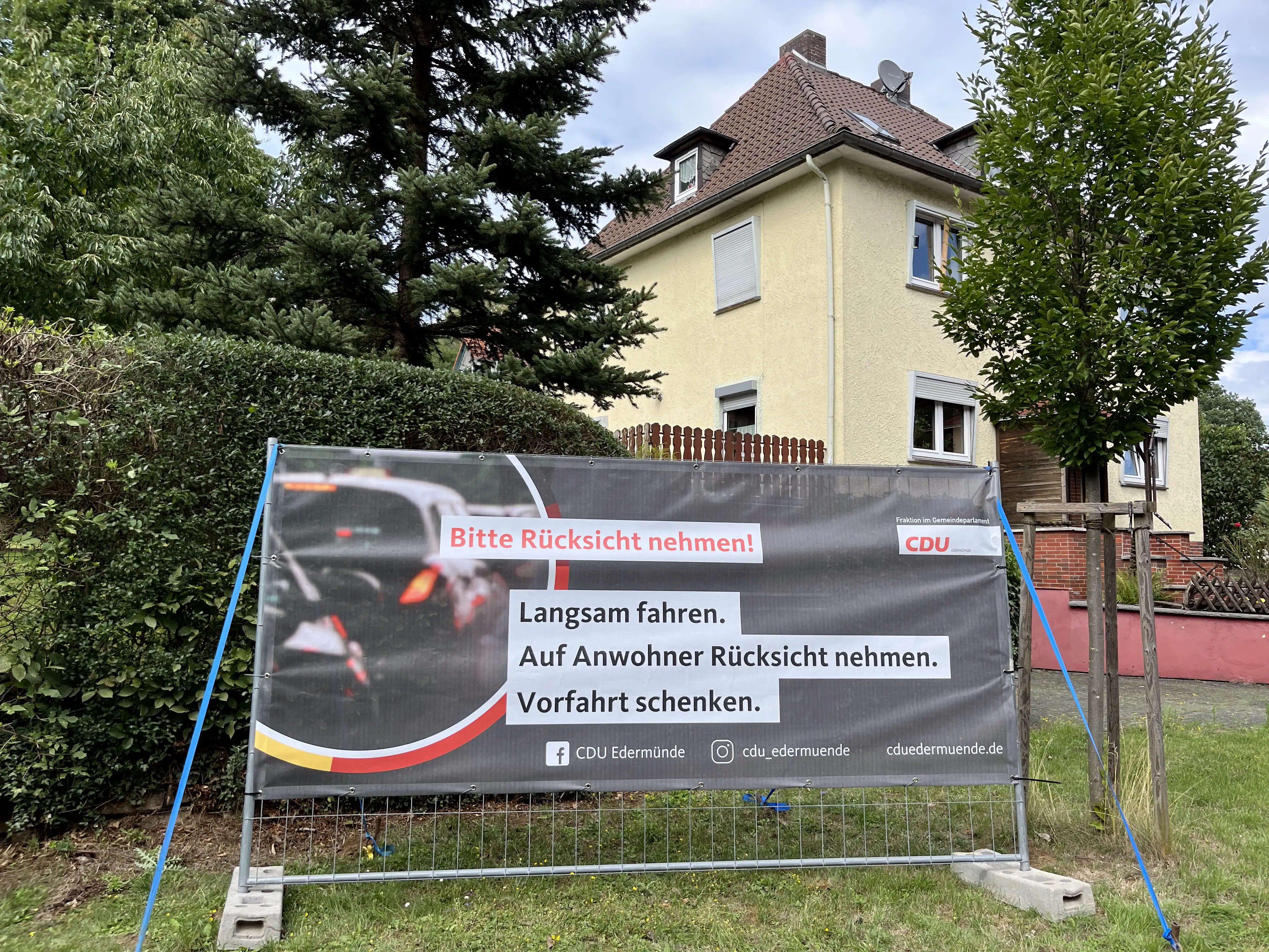 Neben den Großplakaten haben wir auch noch kleinere Anfertigen lassen, die sich perfekt am Gartenzaun aufhängen lassen. Und da nicht jeder CDU Mitglied ist und es ja auch um die Sache geht, haben wir hier unser Logo auch weg gelassen. So spricht doch praktisch nichts dagegen mit zu machen und gemeinsam um Rücksicht zu beten. Wir können insgesamt vier Plakate zur Verfügung stellen. Die Plakate sind 1,7 m lang und 70 cm hoch und lassen sich mit Kabelbindern schnell befestigen, sind winddurchlässig und tragen eine gemeinsame Botschaft. Schreiben Sie uns einfach an über E-Mail oder über unsere Social Media Kanäle und wir lassen Ihnen eins der Plakate zukommen. Voraussetzung dafür ist, dass Sie in Grifte wohnen und die Botschaft bei den Autofahrerinnen und Autofahrern auch an kommen kann - sie also an oder in unmittelbarer Nähe zur Hauptstraße wohnen und - besonders wichtig - auch an dieser Stelle ein Plakat aufgehangen werden darf - wir haben für unsere Plakate bereits Genehmigungen eingeholt. Machen Sie mit und melden Sie sich bei uns! Einfach auf den Button klicken und eine E-Mail an uns schreiben, wir melden uns dann bald bei Ihnen.