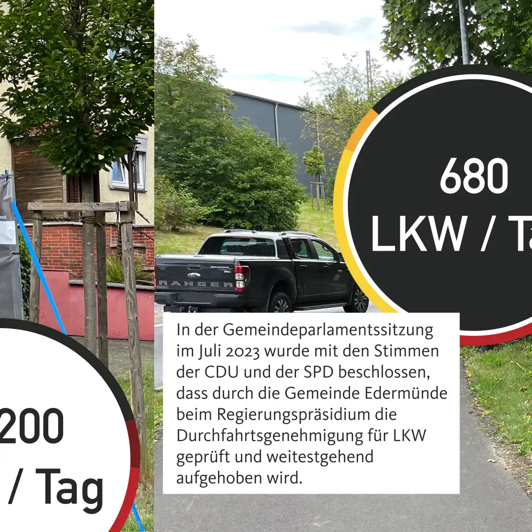 In der Gemeindeparlamentssitzung haben CDU und SPD in einem gemeinsamen Antrag dafür gestimmt, dass die Gemeinde eine Überprüfung der erteilten Genehmigungen durch das Regierungspräsidium angestoßen wird - natürlich mit dem Ziel, dass die Anzahl der LKW die eine Genehmigung haben gegen Null geht. Dennoch werden weiter LKW durch Grifte fahren - mit oder auch ohne Berechtigung dazu.